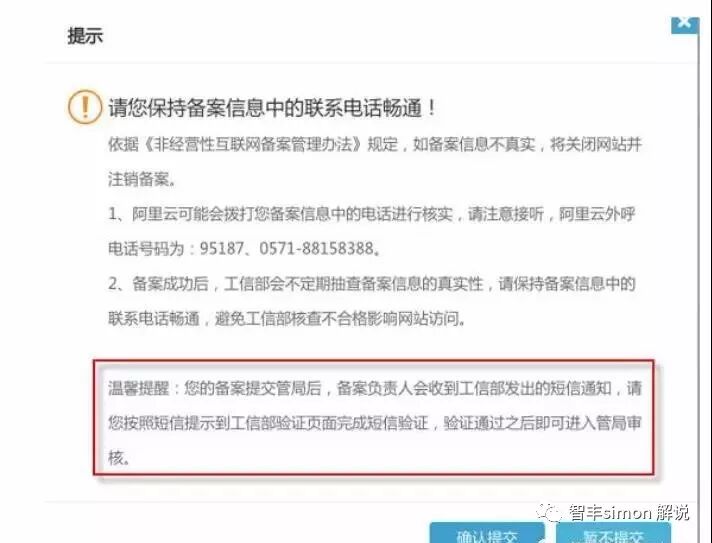 7.手机号码短信核验。天津、甘肃、西藏、宁夏、海南、新疆、青海为工信部要求的手机号码短信核验试点省份,用户需完成手机号码短信验证后,备案申请才能成功提交管局审核。其他省份暂无短信核验要求。