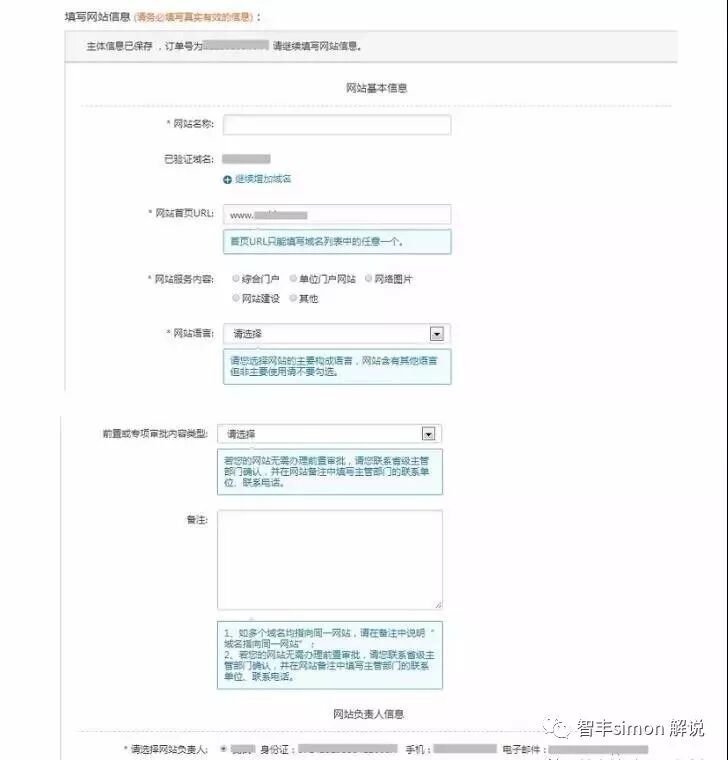 ⑤如果您的网站负责人与主体负责人不是同一个人,可在网站负责人信息栏下选择填写新负责人信息。网站负责人将在后续环节中进行拍照核验。