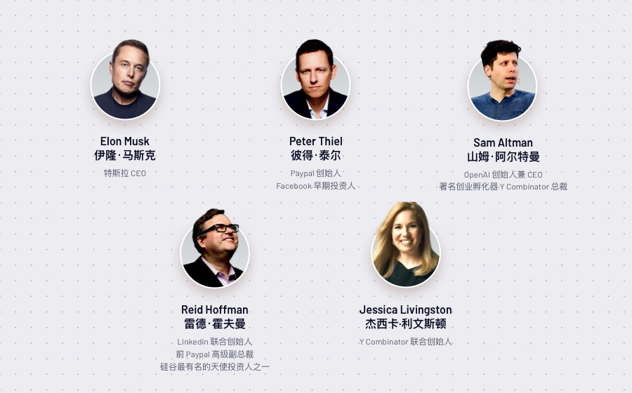 任性的不只是创始人。在2015年公司刚成立时,就有一众有情怀的硅谷大佬给这家公司投资了10亿美金,他们的初心是向一家目标不是为股东创造利润的非营利组织投资,我们也许可以把这笔钱理解为捐赠。以下是捐赠人的名单,看到这份名单大家或许就明白,这是硅谷科技大佬用钱投票带来的颠覆式股权结构的创新。