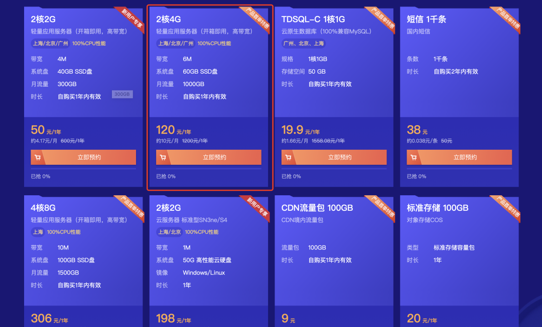 之前是2核4G一年74元,现在涨价到120元一年了。别来问我为什么没有74的那款了,这不是我控制的,腾讯公司的。