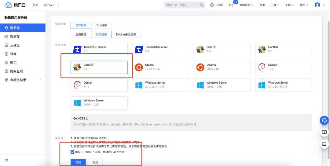 镜像可以选择centos8.2,选择其他的也行,这个随时都可以更改。