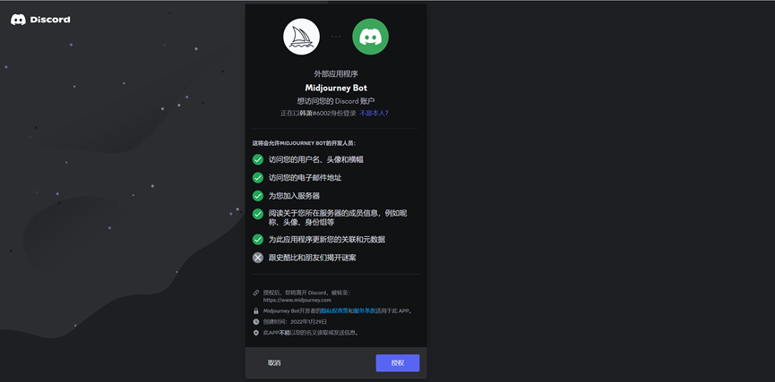 刚刚注册的新号,加入Mjdjourney可能需要等待一段时间。这个我们耐心等待即可,因为Mjdjourney自身有个封控系统,担心我们是营销号。