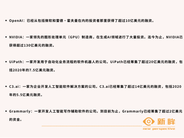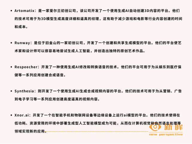 当然,还有许多初创公司正在开发生成型人工智能的创新应用,这里举一些例子: