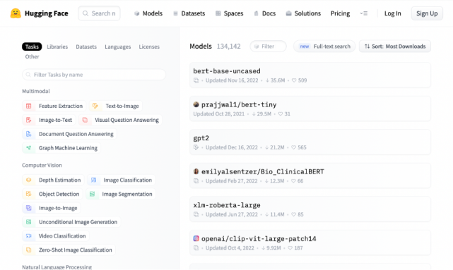 就像存放Git repo的地方叫Github,在 Hugging Face Hub,可以找到上万个已经训练好的模型,用户可以在 Hugging Face上托管和共享ML模型、数据集,也可以自己搭建部署新的模型。