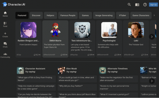 简单来说,产品为用户提供了一种与虚拟聊天机器人chatbot,任何人都可以在其中与虚拟的唐纳德特朗普、埃隆马斯克、臭名昭著的绝命毒师沃尔特怀特和许多其他角色聊天。