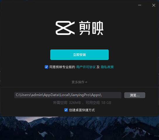 安装过程:点击安装包链接,开始安装,中间不需要进行其他操作,直到安装完毕。安装后,桌面出现了剪映专业版的快捷方式,点击运行即可试用了。