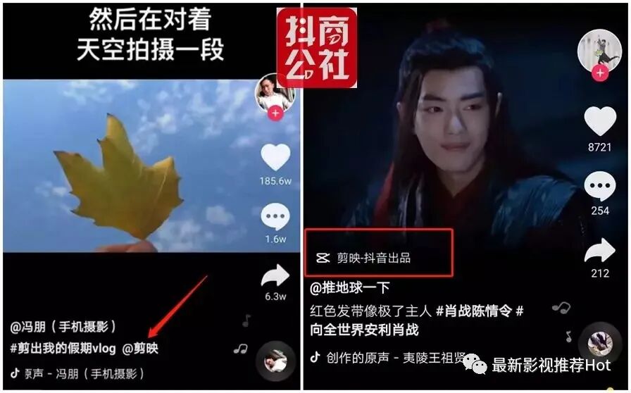 刷抖音视频时,十个视频有九个都会出现@剪映以及剪映-抖音出品的字样,如下图: