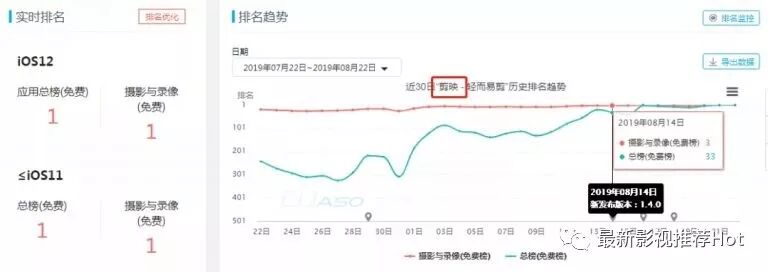 剪映App是抖音自家出的一款手机端视频剪辑软件,自推出以来一直广受喜欢。在CQASO榜单上剪映App的排名也是第一。