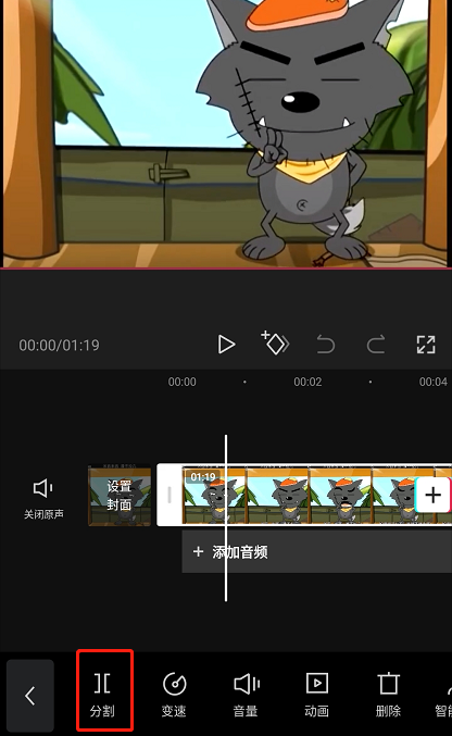 这其实就是裁剪功能,当我们把视频导入后,比如说觉得这段视频的开头很完美,是我想要的,但突然发现某一段画面质量不好,那这个时候我们可以利用分割功能,把这一部分剪掉。