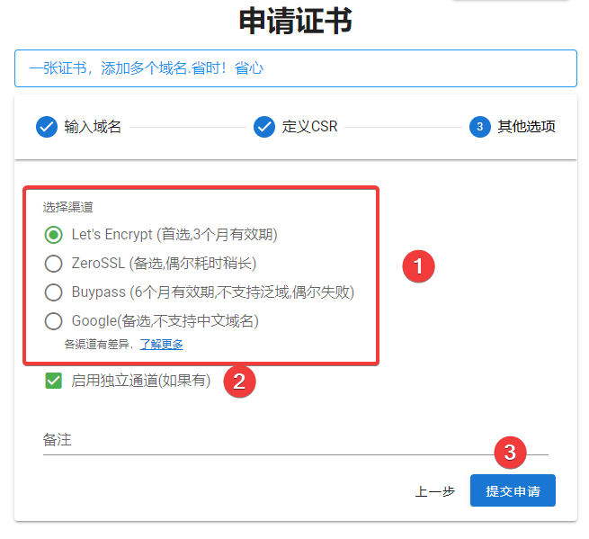 因此建议合理提交单次申请的域名数量,建议一次控制在5个以内,不宜太多,不然反而不好申请成功。