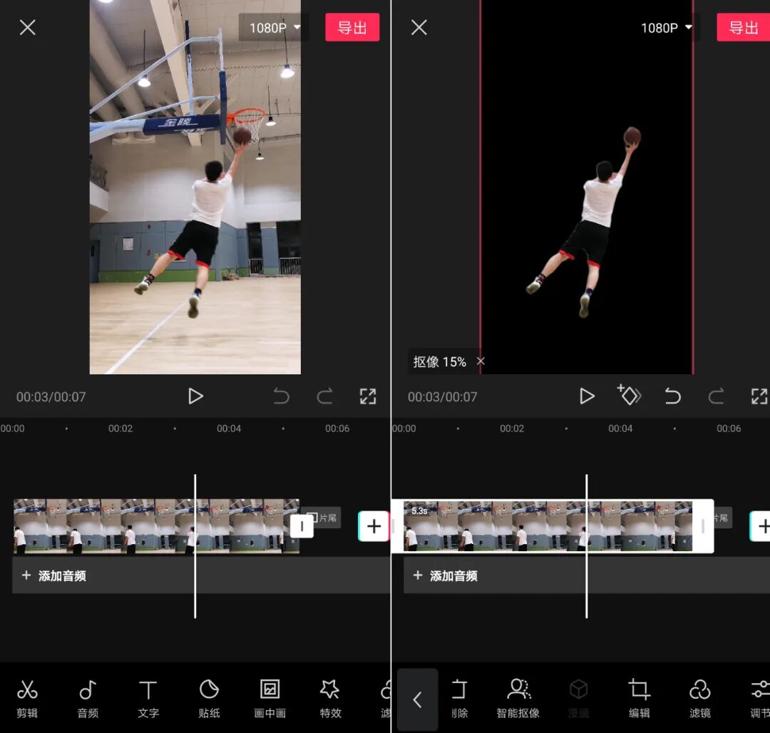 曾经的专业抠像需要绿幕,再后期合成;今天的剪映有了算法加持,只要你的主体清楚、和背景有较强的割裂,别管你是纯色背景、还是杂乱的背景,剪映会秒抠。