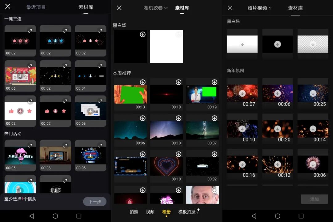 比如,新闻联播的、好莱坞大片的片头,电视没信号、two years later这样的转场,以及绿幕、倒计时、节日气氛这样的效果素材。