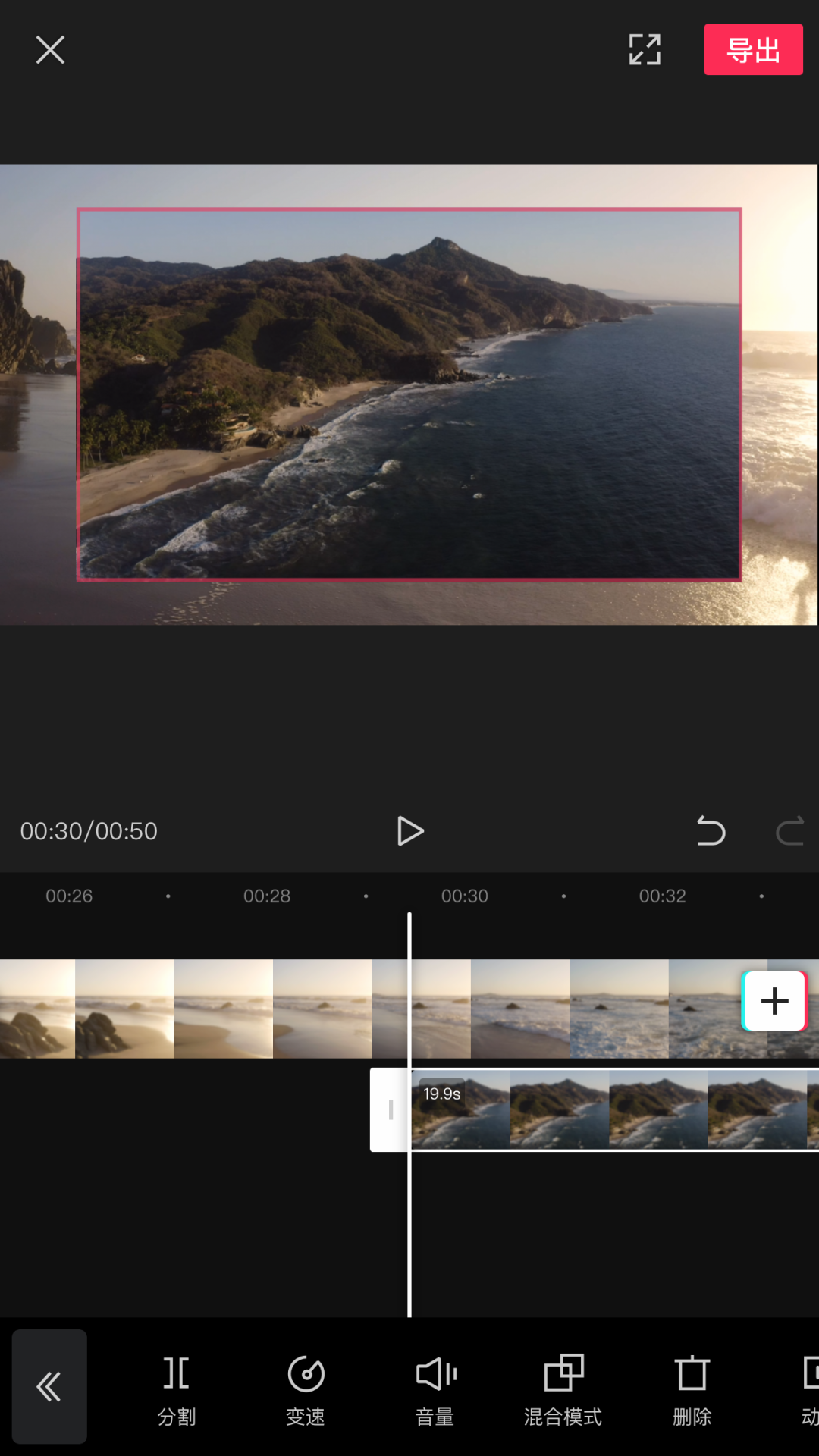 使用画中画功能,你可以添加多个视频轨道,添加后双指开合即可以自由缩放,按住画面即可以自由拖动。