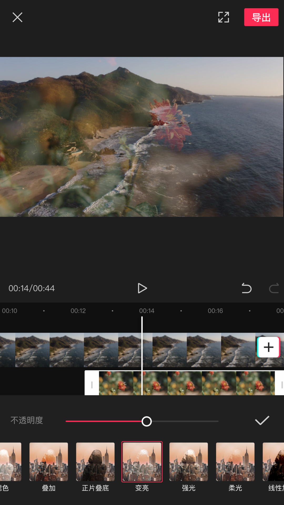 在添加画中画视频后,我们还可以设置混合模式,不同的混合模式能带来不同的效果,能让我们做出各种各样的特效,比如你可以做一些双重曝光或多重曝光的效果。