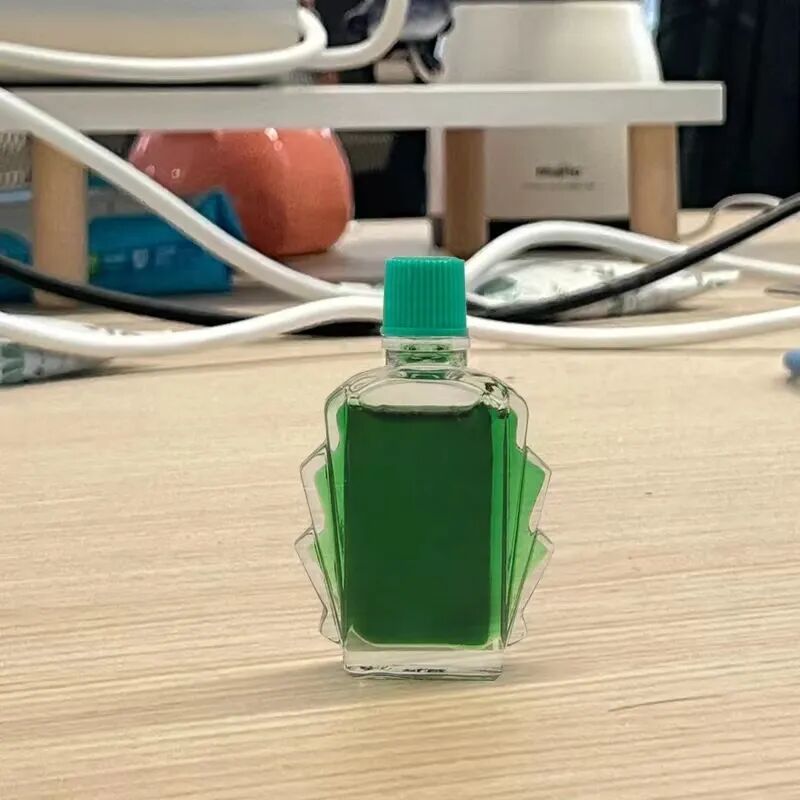 再比如,我们的艳君老师,随手拿起电脑桌上的风油精,拍了一张超级简单又普通的图