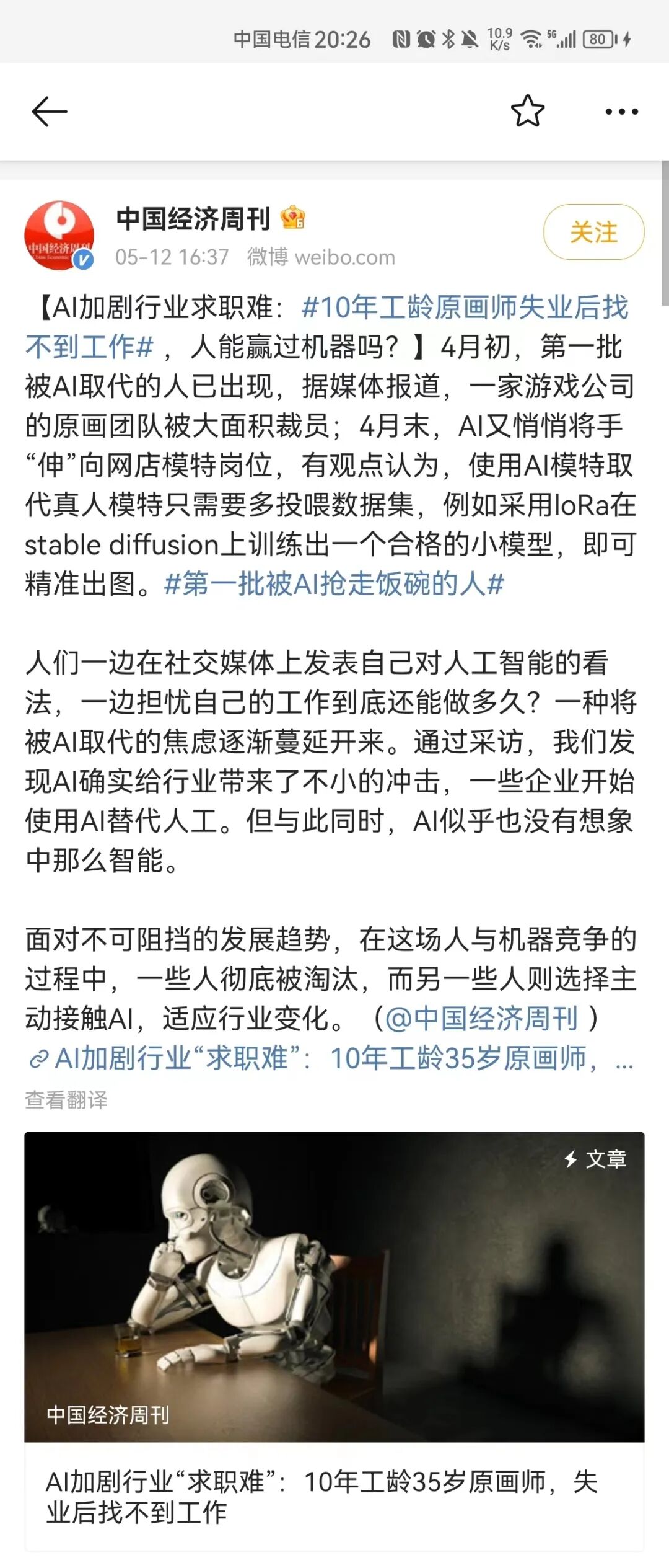 今年4月,一条有关AI 替代人工的故事,「首批因 AI 失业的人」「游戏公司裁掉一半原画师」的新闻把我惊呆了!