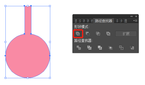 Ai中另一个常用于绘制复杂形状的工具是路径查找器。点击右侧功能面板内或菜单栏中的「窗口」下的路径查找器既可打开。