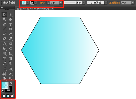 绘制好的形状可以对其进行填色和描边。选择工具选择对象后,菜单栏下方出现对象的填色和描边选项。或者工具栏最下方的填充和描边工具按钮。功能是类似的。