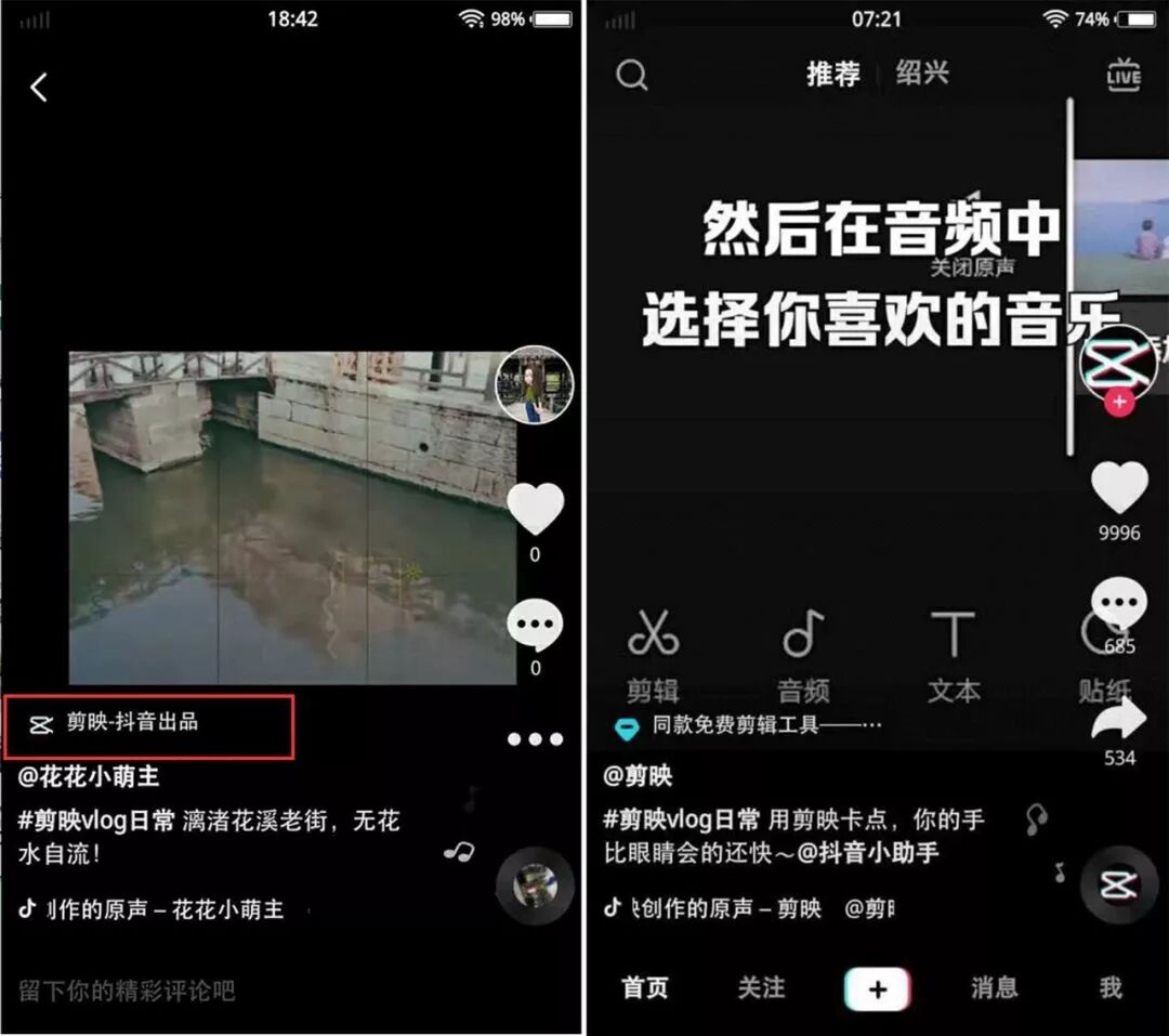 但是,分享到抖音后,剪映有个弊端,就是有自身的推广logo,这对很多用户来说可能不愿意接受,我在抖音上,还刷到过剪映的广告。若想要去掉这个推广,就必须导出保存到手机后,再由抖音路径重新进行上传剪辑。顺便提一句,多次操作后,剪映的确会卡壳。