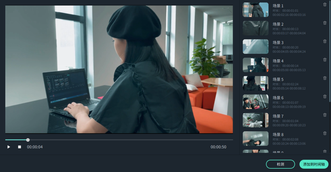 根据场景变换一键切割成不同视频片段,这个功能特别适合剪辑动漫混剪卡点视频、影视二创等。