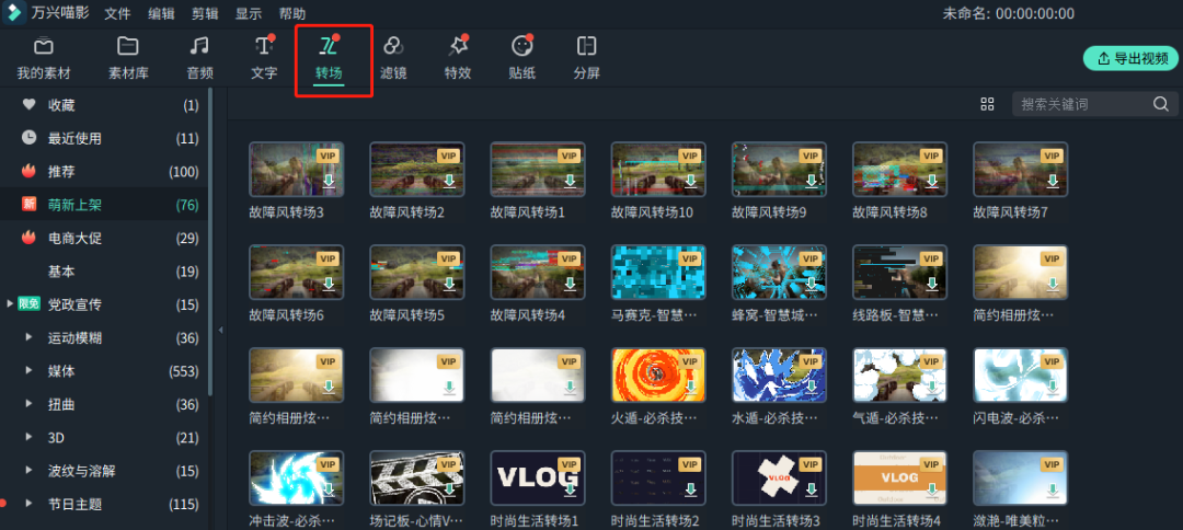 万兴喵影会根据营销热点,时事更新相应视频资源素材,方便用户直接拖入视频轨道使用。