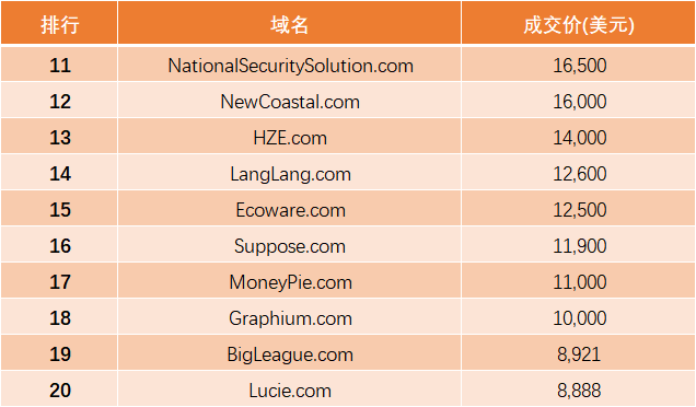 排名11—20的域名,在这里我们就不详细说了!大家可以根据下表自行查阅。