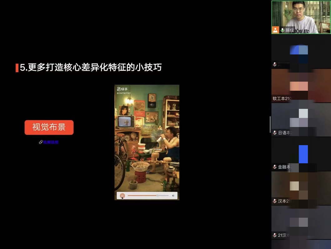 陈佳老师表示:无论是什么专业,学习新媒体、短视频这样的媒介都是一种锻炼,我们希望同学们能了解短视频的发展进度,也通过快手平台了解社会并参与进来,在较为虚拟的生态里发挥他们的特长,这样在以后的工作中能更容易找到自己的优势。