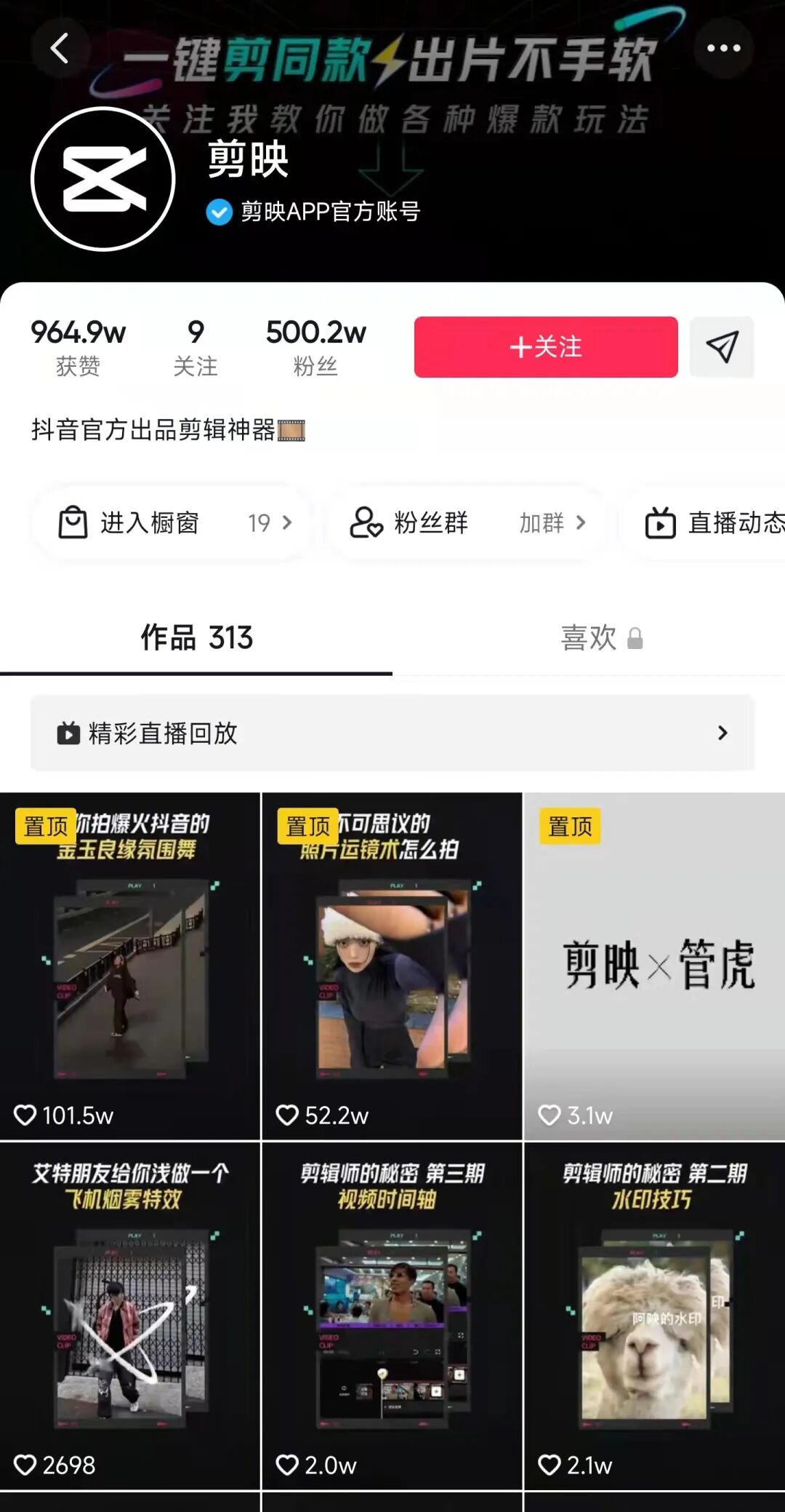 那关于剪映的操作方法,大家可以直接下载一个APP或者在电脑端下载一个客户端,然后去抖音关注一下剪映的官方账号,里面有很多的教学