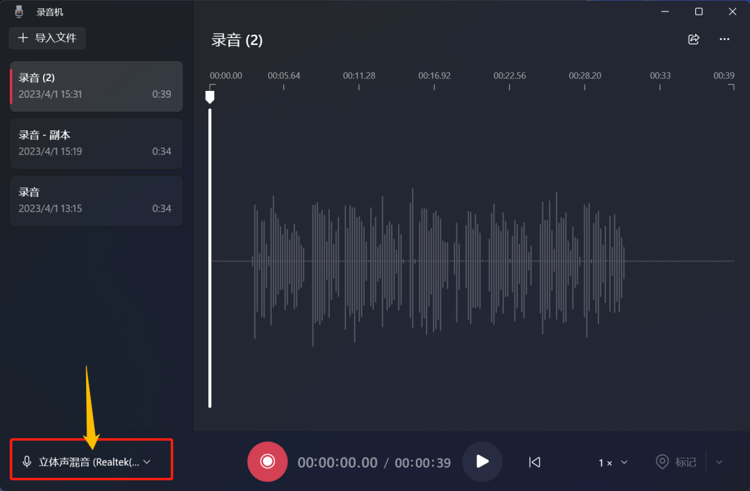 系统设置完成以后,回到录音机软件,设置声音采集设备为立体声混音的选项,见下图。