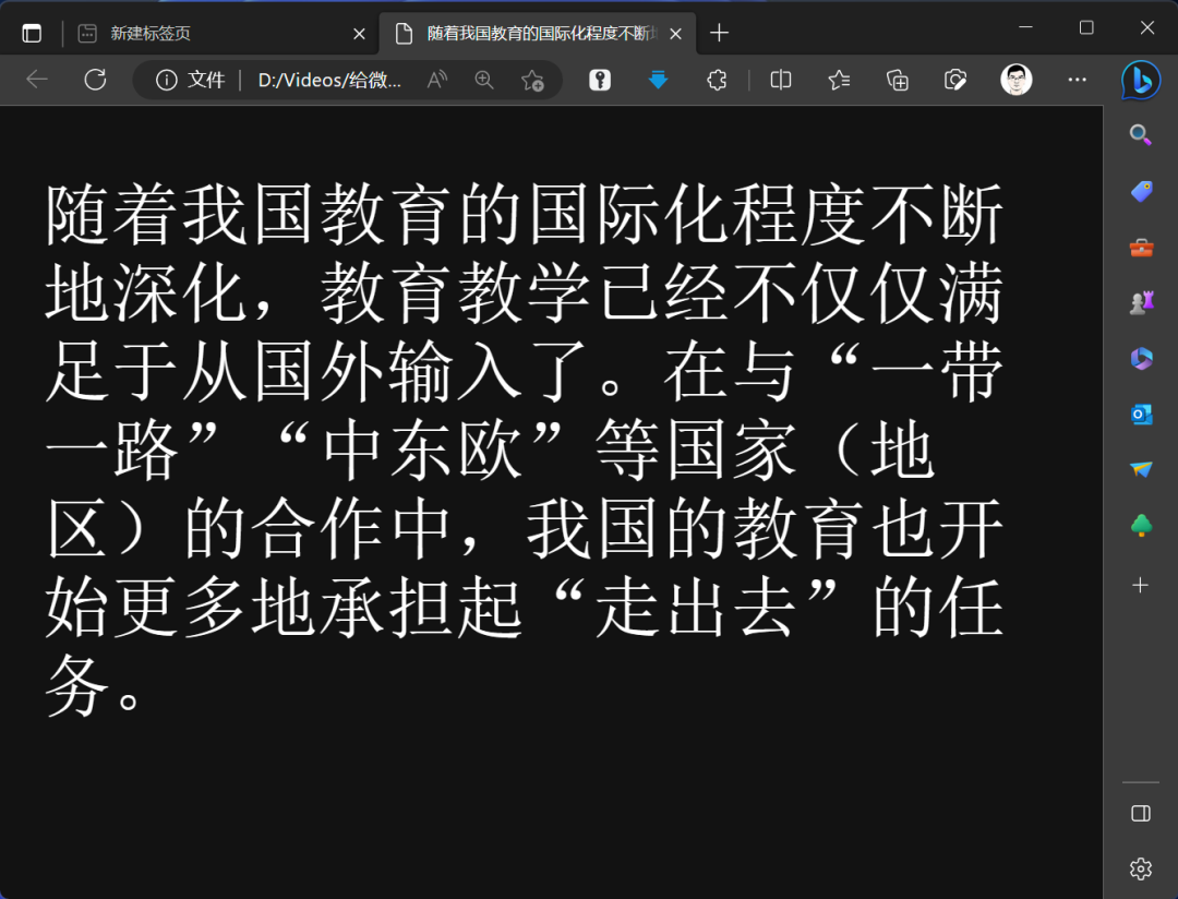 第二步,打开Edge浏览器窗口,从资源管理器中将刚才保存的配音文字txt文件拖到Edge浏览器窗口中进行显示,效果见下图。