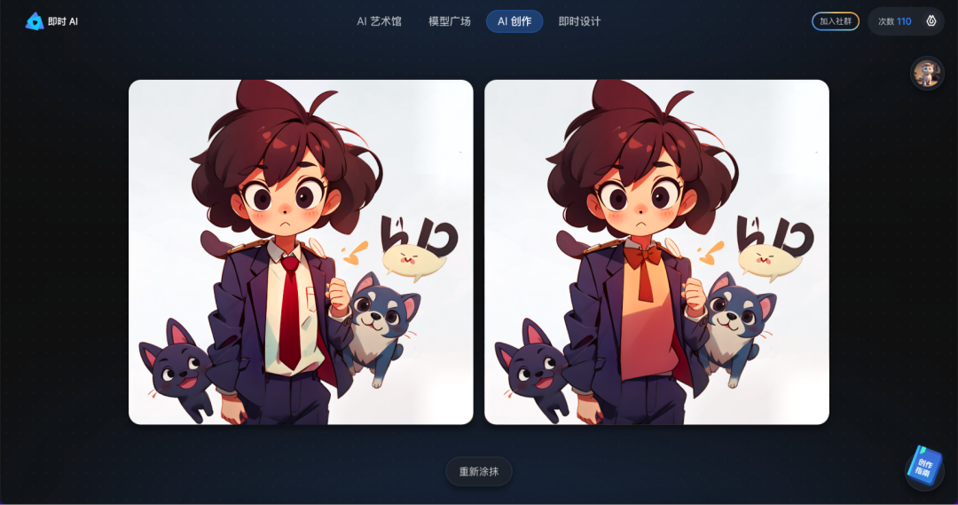 4. 涂抹修改:即时 AI 灵感还提供了涂抹修改的功能,记得用起来,能更精确地调整作品。