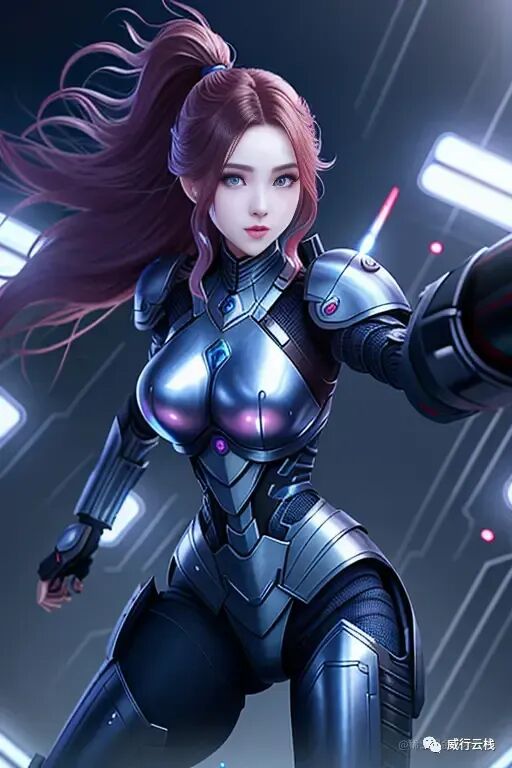 第二行描述了主体,是一个女性赛博朋克,使用了ulzzang-6500的这个外部资源来优化了形象;