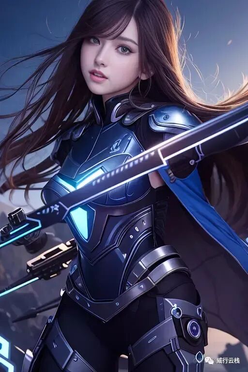 masterpiece, best quality, high quality, game cg,a beautiful female cyborg, (solo), (ulzzang-6500-v1.1:0.84),upper body, armor, blue eyes,happy, light smile,wind,fighting bravely, in a dynamic fighting pose,detailed face, too many details, (best shadow:0.78), (cinematic light:0.72),