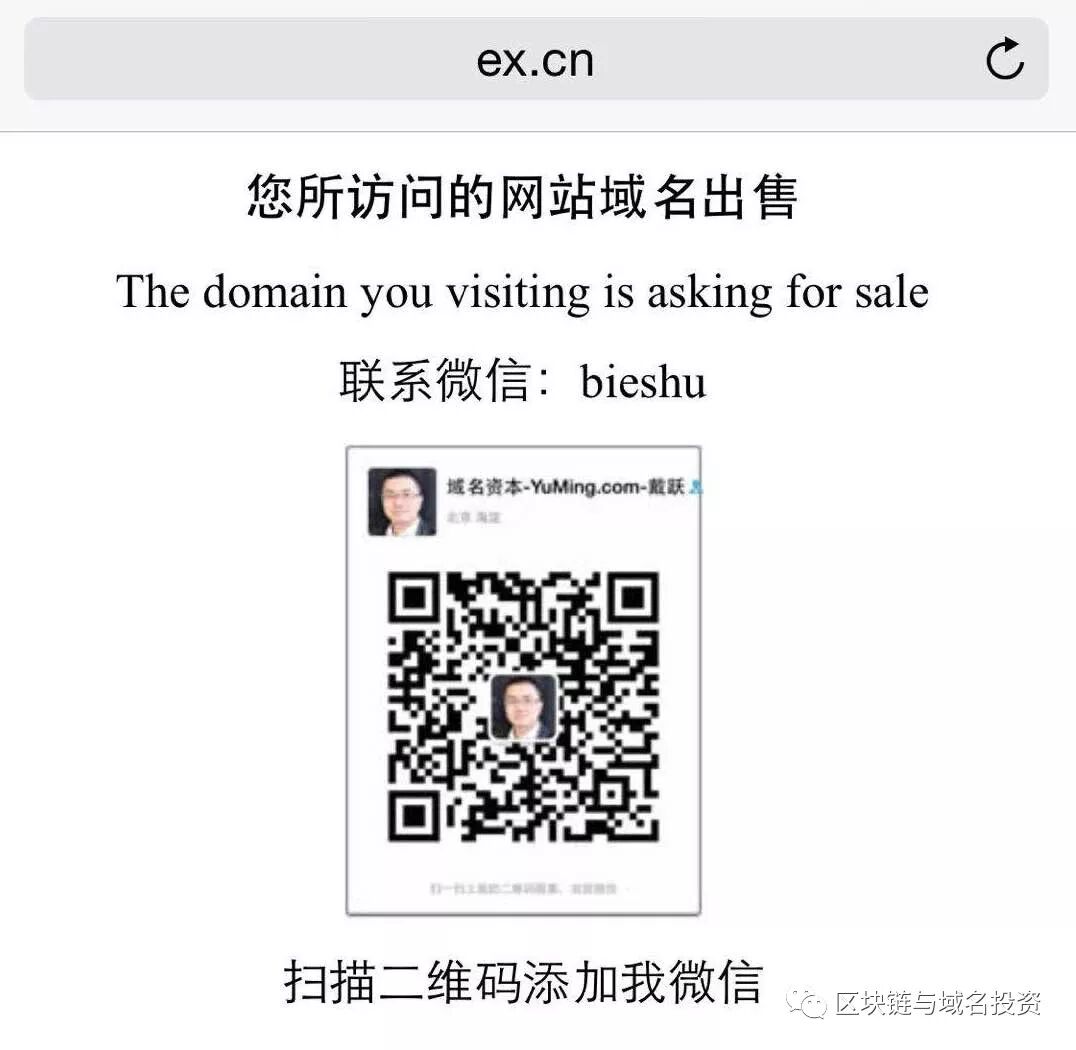 这不,中国最好的交易所域名 EX.CN 被爆交易,EX含义直指交易所。其实像这种极品域名买家是极多的,能买到这种域名也是幸运的!经查该域名注册于2003年,至今已有15年。EX.CN域名的买家、是我们多次报道其收购多个数千万极品域名的域名资本创始人戴跃。据戴跃透露这个域名是他以100个BTC买来的,我们也曾报道过戴跃曾将OK.CN出售给OKEX,现访问OK.CN已跳转至OKEX官网。戴跃近期是疯狂的收购极品域名哈!所收购的YB.COM 云币、TB.COM 淘币、JB.COM 金币、GB.COM 港币、niubi.com 牛逼、yuming.com 域名等,这些可谓个个都是极品。由此不难看出,域名交易也是投资界的潜力股。