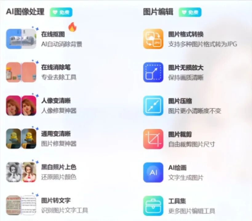 一键识别图片,智能识别图片,3秒钟自动分离背景,轻松得到一张背景透明的图片,还可去水印、模糊图片变清晰、图片压缩裁剪等,并且所有功能都是免费对用户开放的,不限制次数,修到满意为止。