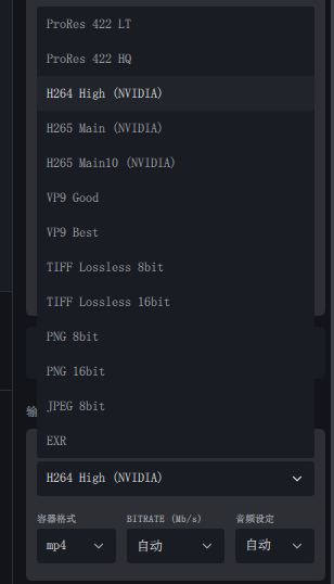 接着输出编码格式的选择,这里可以直接选择H.264,输出MP4。
