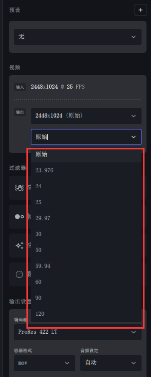 除了分辨率支持最大输出8K之外,3.0版本开始还可以直接设置帧速率,「对视频进行补帧」,并且新增非常不错的AI模型,比如Apollo AI慢动作模型。