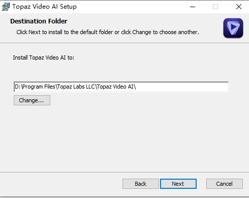 安装软件程序 Topaz Video AI-3.0.5.msi,可以更改安装目录
