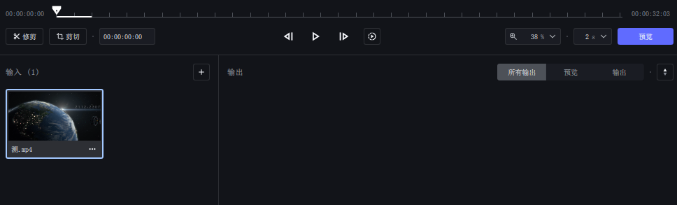 在左区域可对视频进行裁剪、修剪,在右边区域设置输出分辨率和帧速率。