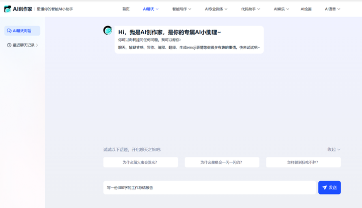 AI创作家也是现在可以免费下载使用的软件,无需翻墙。主要可以通过对话的方式,辅助我们进行文章、歌曲的创作,它的衍生功能也特别丰富,分析星座运势等、教你学习、做饭、面试答疑样样精通。