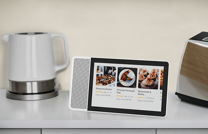 到了厨房,或许你想试一下新的食谱。由于智能显示器结合了云端助手和扬声器的语音UI功能,你可以一边洗菜一边命令显示器播放相关视频。播放完毕后,显示器还能自动跳到食谱阅读位置,通过语音引导你完成作品。