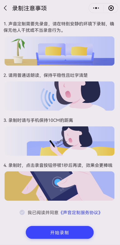 想要克隆自己的声音,只需要打开软件后,选择声音复刻,再点击 定制语音包 按钮,然后按照录制要求、录制上传一段自己的声音。