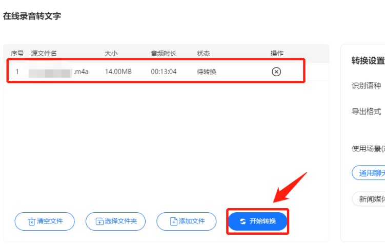 操作步骤:进入网站,在语音转文字先点击开始转换,再选择文件,设置识别语种、导出格式,点击开始转换,等待一会儿就转换成功啦。选择预览可以查看转换效果,点击下载即可下载文档。