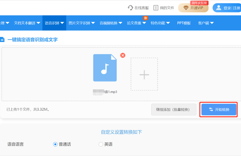 操作步骤:进入网站,点击选择文件,自定义语音语言,再点击开始转换,稍等几分钟转换即可完成,点击立即下载,即可下载保存转录后的文本材料。