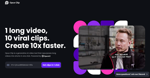 Opus Clip 是一款生成式的 AI 视频工具,可将长视频调整为短视频。通过 AI 分析视频,分析挑选视频亮点片段,并将它们重新排列成可以单独存在的短视频。AI 还会为每个短片生成一个分数,以显示其病毒式传播潜力,并预测移动面孔,确保视频帧的中心始终位于你和对话人员的脸上。