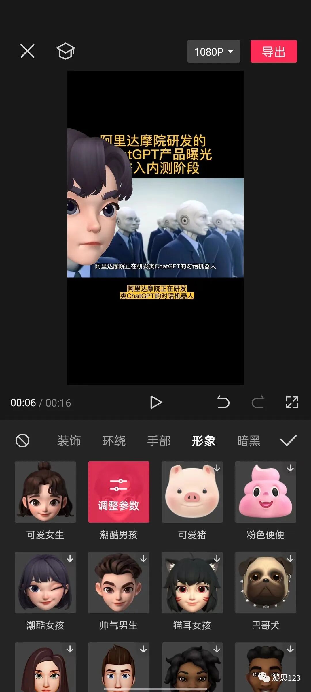 第二个:我平时用的最多的是抖音玩法----人像风格可以把自己的头像变成跟自己类似的卡通。