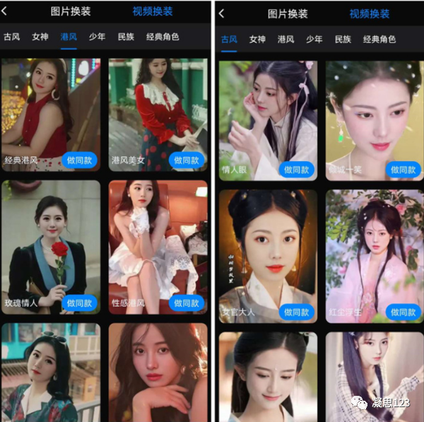 这个app也可以用来给视频换脸,它的换脸模板比较多,可以穿越时空成为古装美人: