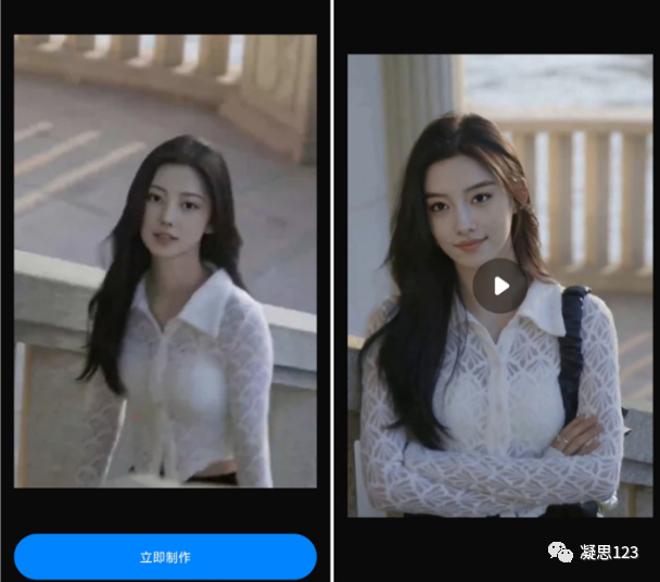选好模板后,上传正脸照片就可以生成换脸视频啦,效果真的很自然,不出门也可以拥有各种风格的写真照。
