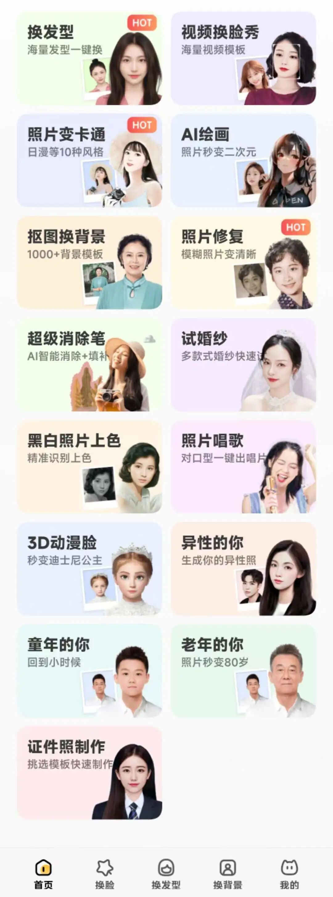 今天介绍一款AI换脸手机APP软件,这款软件不仅支持【AI图片换脸】,同时支持【AI视频换脸】,还支持【AI绘画、AI换发型、AI抠图换背景、AI卡通变换、老照片修复、证件证制作】等等,可谓功能非常强大!如果你觉得有趣,想要体验的话,不妨下载试试!