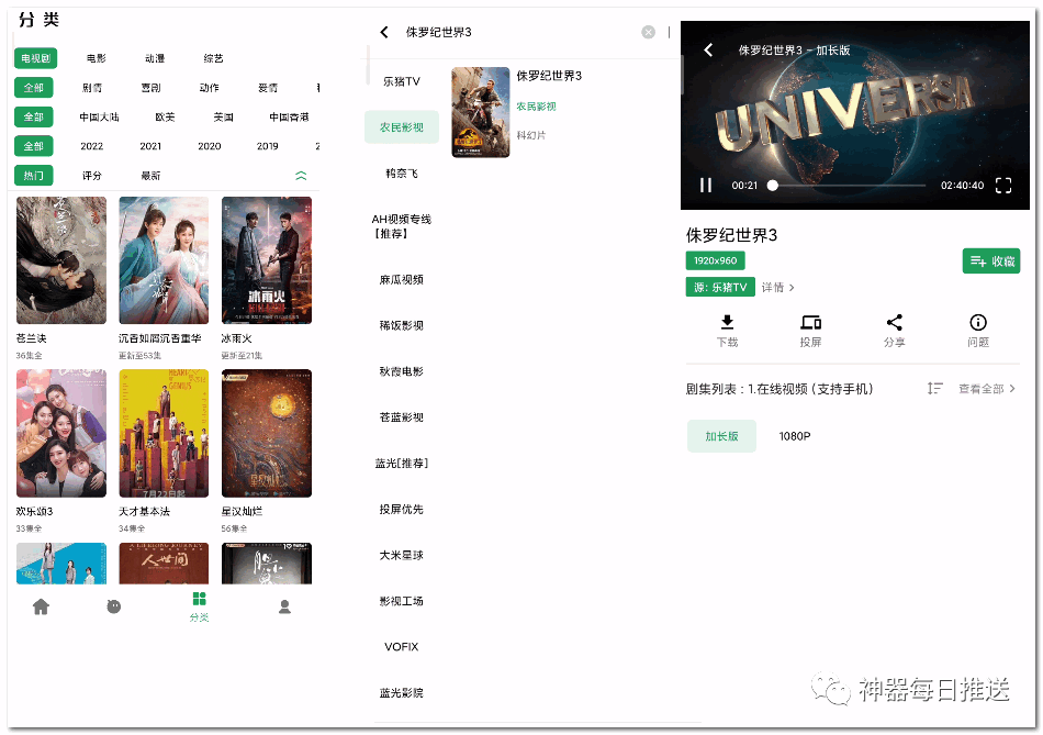 支持聚合搜索、在线点播,内置有数十个优质站源;